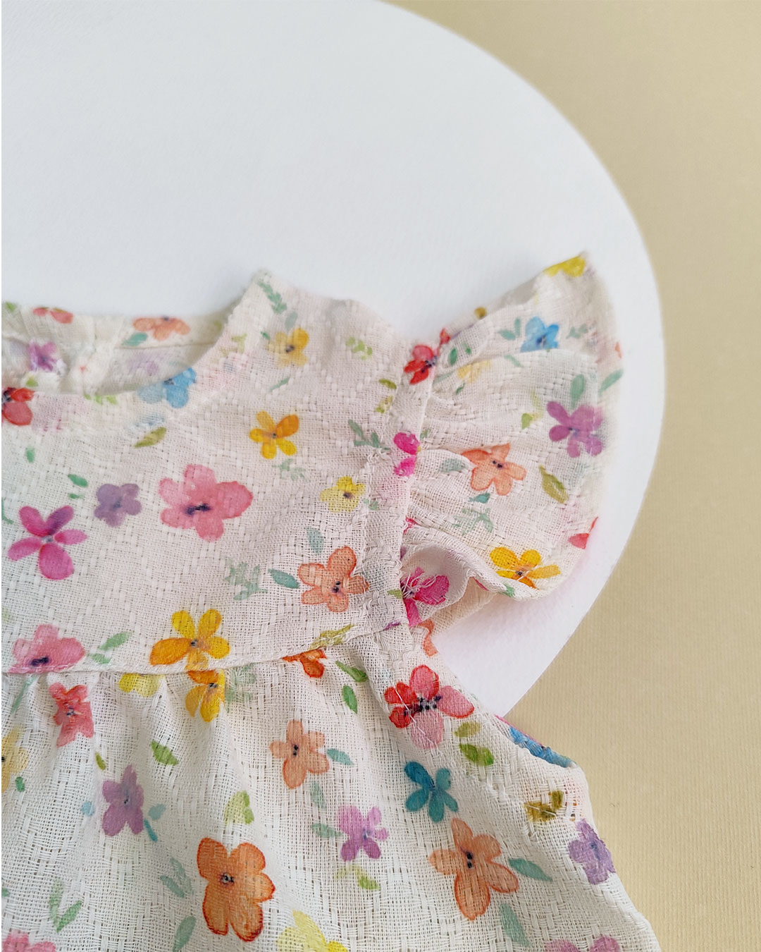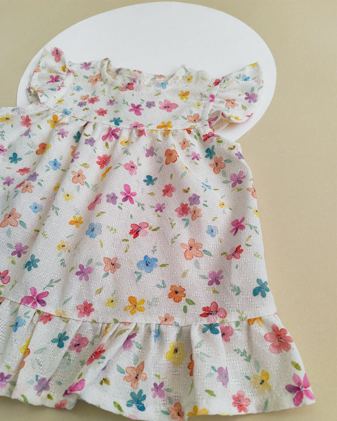 خانه لباس بچگانه پیراهن دخترانه پیراهن مدل پرگل لینن ژاکارد آستین فرشته با طرح اختصاصی گل های آبرنگی