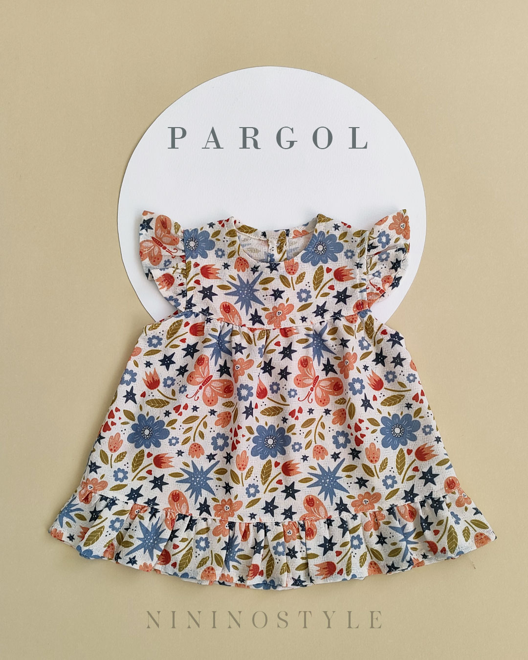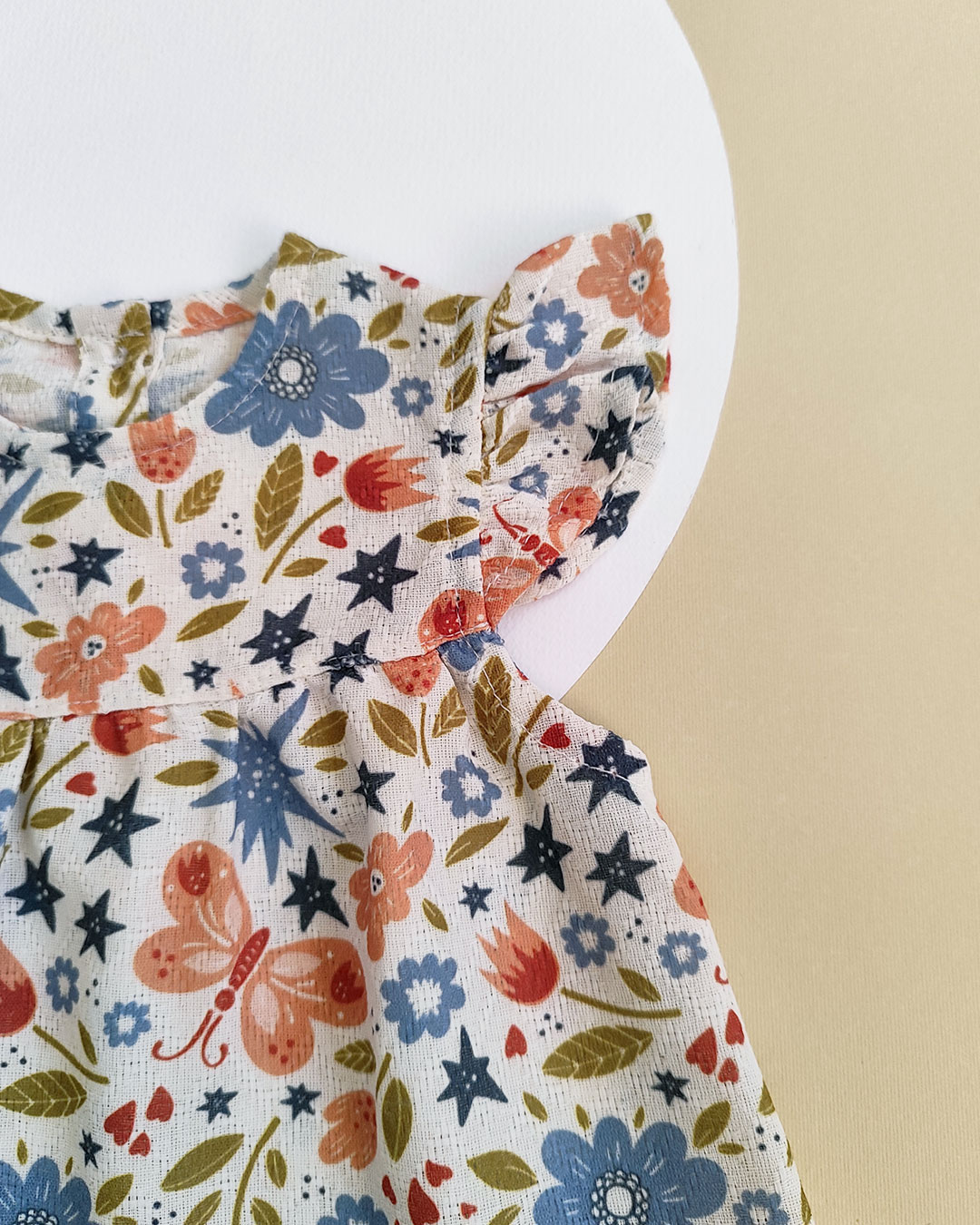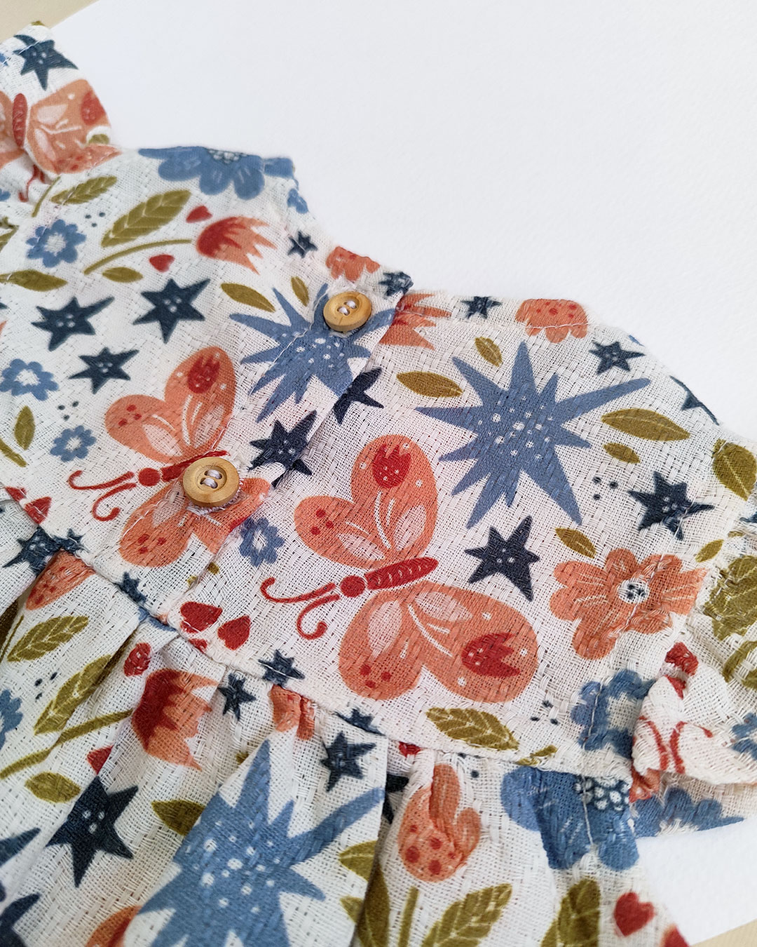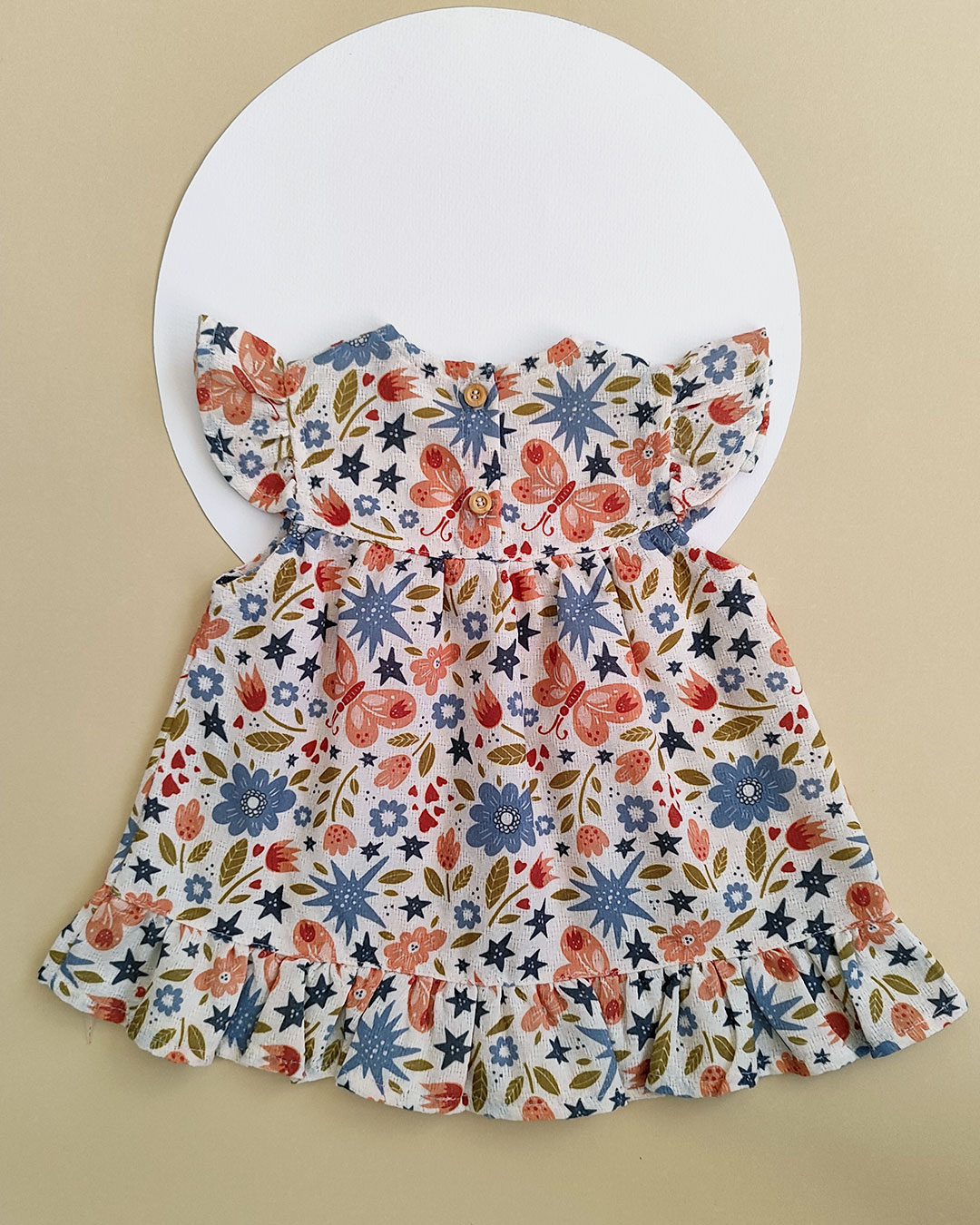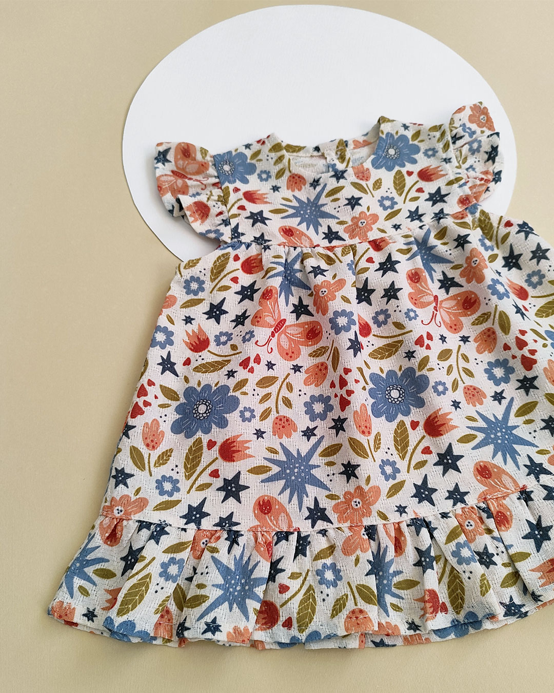 خانه لباس بچگانه پیراهن دخترانه پیراهن مدل پرگل لینن ژاکارد آستین فرشته با طرح اختصاصی گل و پروانه